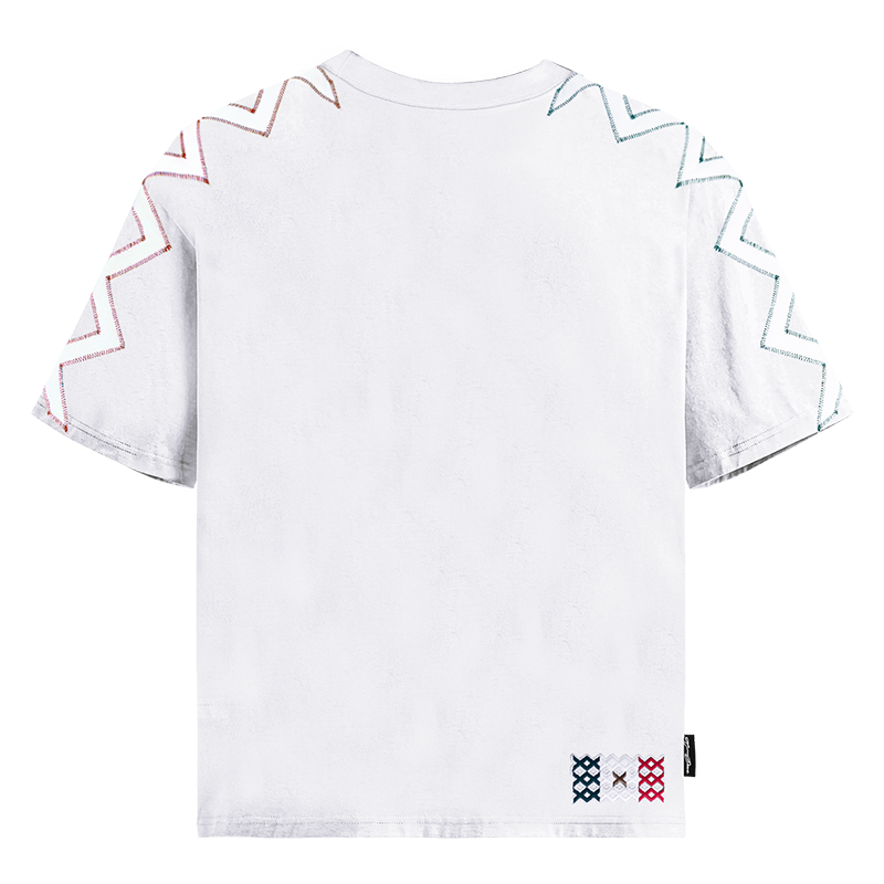 - XXX blancas contorno Verde y Rojo bordadas en ambas mangas.